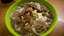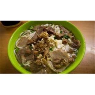 (3)食用时按下列顺序操作:米粉(有酸粉和细粉,一般一碗牛肉粉约150克-200克)放入开水锅中烫透,捞入汤碗里,在米粉上铺上牛肉片(25克),盖上炖熟的牛肉丁(25克)或牛筋丁,放上适量的酸菜,加上少许牛油,最后浇上滚烫的原汤,洒上芫荽节即可。