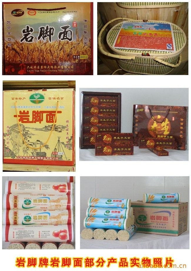 岩脚面起源于清朝中期,以香,滑,劲,脆的纯天然独特风格闻名省内外,生产于气候炎热,溶洞众多,矿泉水水质清澈甘甜,矿物质和微量元素丰富的卡斯特环境中。