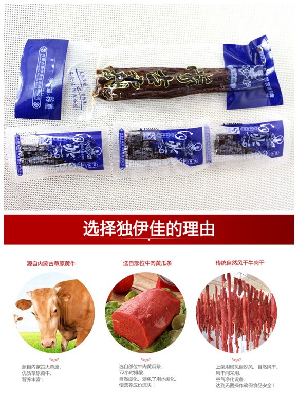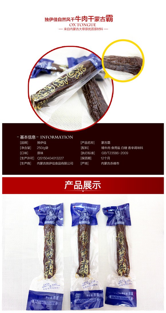 • 牛肉干内蒙古特产赤峰独伊佳蒙古霸手撕风干牛肉干250g原味零食