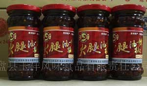 贵州“凉都.孟记”火腿油辣椒采用民间工艺精心炒制,是贵州盘县独有的特色调味品,具有鲜活透亮、香辣可口的特点。令人一望生津,实为佐餐调味的上好佳品。 盘县位于贵州西南,自然条件优越造就了勤劳而又勇敢的盘县人,“经商者十有八九”(盘县县志记载),许多年轻人甚至还未成年,就要开始做外出工作,到外面的世界打拼。儿子远行,母亲就会亲手做一罐老火腿,当年的新辣椒熬制的火腿油辣椒,让儿子带在生边,这美味的油辣椒携带方便,不易变质;既能佐餐,还省费用,更代表母亲深深的牵挂。