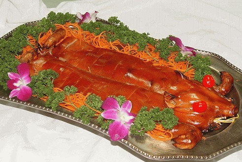 风猪,是贵州荔波布衣族地区的特产。清代《荔波县志》记载:本县小猪特别肥嫩,风猪烧猪素有名。如今,风猪已成为高级宴席上一道特色名菜。 制作方法: 用小猪腌制,风干而成。成菜肉质细嫩,滋味极鲜,异常适口。将肥壮小猪宰杀,治净,顺头骨、脊骨进刀斩成二爿,取出脑髓和脊髓,挖出眼珠。将火硝、丁香、白芷、细辛、桂皮、花椒、山姜、陈皮研成细末,与细盐混合,均匀地抹遍猪内腔,放入大缸内腌渍一天一夜后,将糯米酒倒入缸内,将猪淹没,盖好浸10天。取出,用竹片将猪腹撑开,晒一周,里外抹上一层菜油或麻油,风干即成。食用时,取肉适量,切块加调味蒸食,或配以菜蔬烹制,其味均佳。