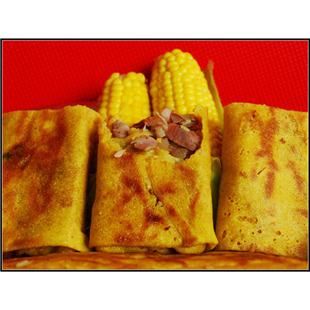 煎饼在全国各地都能找到,只是风味各有不同。涞源煎饼就是一个独特的品种。涞源煎饼独特之处主要是用料。民间说,涞源煎饼是三米饼,主料是玉米、小米和黄豆,其次还要加入适量花椒、大料、葱、姜、蒜做辅料。为了使煎饼更加筋道,有人还喜欢加上一点小麦。将这些原料混在一起、用水发透,然后用石磨磨成糊浆。涞源煎饼有“四绝”,一是个大,涞源的煎饼铛子最大直径可达一米多,一般也不少于二尺;二是极薄,毫不夸张地讲,每张煎饼都薄如纸;三是金黄,涞源煎饼色泽如金;四是筋道,每张煎饼均可以提溜起来,感觉如绸。概括起来讲就是“大如盖、薄如纸、色如金、筋如绸”。