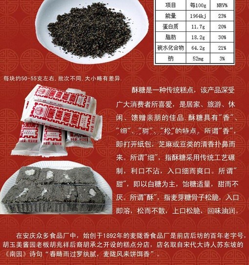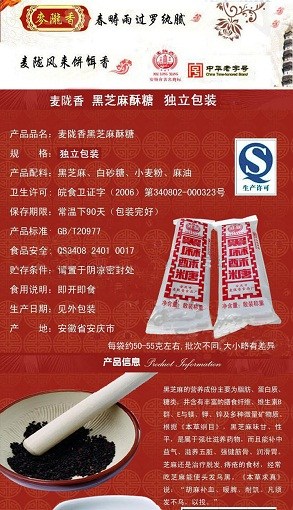 - 中华老字号麦陇香传统黑芝麻酥糖