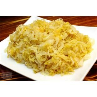 东北酸菜的原料,就是当地人习以为常的大白菜。腌酸菜时,首先要挑好白菜,然后摘去残根烂叶、大叶黄叶,在太阳底下晒几天,用清水洗净后,再一棵棵、一层层地在大缸里摆放整齐,菜顶压一个大石头后,加入生水或者凉白开(最好是凉白开)浸腌起来,密封存放,在寒冷的环境中让菜慢慢紧缩,发酵,三十天以后便大功告成。赶上降温,便要透过冰碴从缸中取出酸菜。这种方法叫生腌,还有一种熟腌,所需要的时间要短一些。先烧一锅开水,把洗净的白菜放在锅里烫一下,放凉后再压进缸里,这样腌30天后就能炖熟食用了。