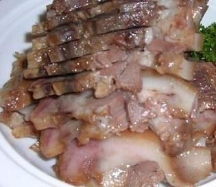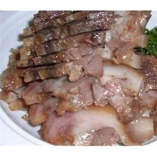 猪头肉诙称“扒猪脸”,诗云“长鬣大耳肥含膘,嫩荷叶破青青包”,指的就是荷叶包的猪头肉。