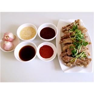 最后,是辅料,吃手抓肉有一句格言:“吃肉不吃蒜,味道减一半。”因此蘸上本店特制的佐料吃起来会更有滋味。吃完肉再喝靖远人特制的八宝茶,则能达到提气、补虚、补血、益肾、壮阳、强身的作用。