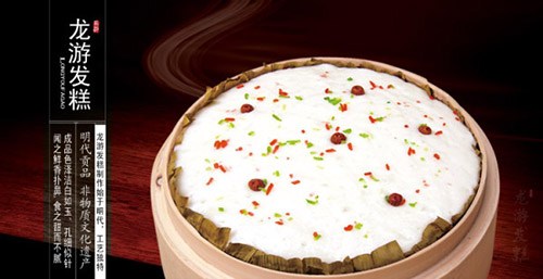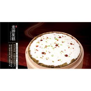龙游发糕——是用上等粳米为主料,以白糖、猪油、蜜枣等为配料,按自然发酵蒸制而成的名点。不加任何化学药品,是纯天然的食品。祖传为皇上贡品,发糕形似明月,表示家家团圆,象征吉利,乡音为“福高”,其意为“年年发,步步高”之意,故为馈赠亲友之佳品。发糕特点——糯而不腻,鲜香可口