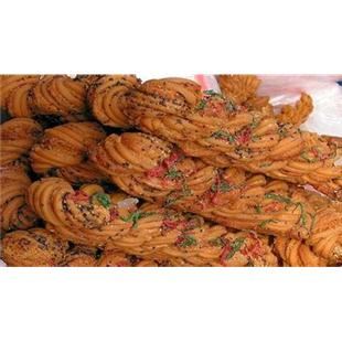 桂发祥麻花, 又称十八街麻花,是与天津狗不理包子、耳朵眼炸糕并称的"天津三绝"食品之一。桂发祥什锦夹馅麻花酥脆香甜,风味独特,且久存不绵,春秋季可存放三个月,夏季也可存放两个月,令人叫绝。十八街麻花是经过反复探索进行创新,在白条和麻条中间夹一条含有桂花、闵姜、桃仁、瓜条等多种小料的酥馅,使炸出的麻花酥软香甜与众不同,创造出的什锦夹馅大麻花。其特点是香、酥、脆、甜,在干燥通风处放置数月不走味,不绵软、不变质。 来天津旅游的国内外宾客,临走时都要带上几盒麻花,送亲朋好友。 桂发祥麻花的创始人是范桂才和范桂林兄弟,至今已有70多年的历史。当时,兄弟二人在天津大沽南路的十八街各开了一个麻花店,名叫"桂发祥"和"桂发成",他们比着干,麻花越炸越好,俗称"十八街麻花"。1949年后,两店合一,由国家投资重建店堂,定名桂发祥麻花店。1983年成立了天津市桂发祥麻花公司,在市内开设了5个分店,并在长春、石家庄、太原、郑州设立了分店。