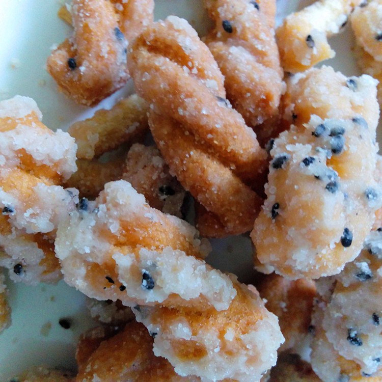 潮汕油索,看起来像东北的大麻花,更有潮汕的风韵,小巧玲珑且地方风味浓郁。甜而脆,里面浓浓的香葱味道,还有外面一层薄薄的白纱糖,甜而不腻,是百吃不厌的甜品。油索基本上是现做现卖,咸味甜味任选。油索味道是又酥又香,甜味中又夹着葱香的味道,是甜又似夹咸,多重口感,超好吃,是潮汕人搭配茶的必备品