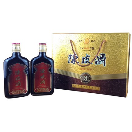 陈皮酒是江苏东台市汉族传统名酒,据传源于北宋范仲淹等所制的药酒,始酿于清乾隆年间。选用上等精白糯米为原料,采用传统工艺配制而成,配以名贵中药,营养丰富,含多种氨基酸。有“稠绵醇厚,香味独特,落口甘畅,余味悠然”之誉。并有理气开胃,舒筋活血之功能。