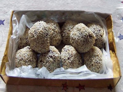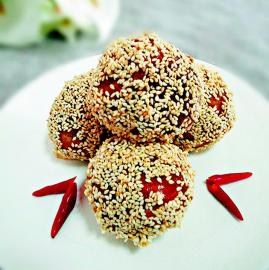 浆料:白砂糖3.5可 饴糖7.5克 蜂蜜1.25刻 炸制又6.5千克 桂花芝麻仁8千克